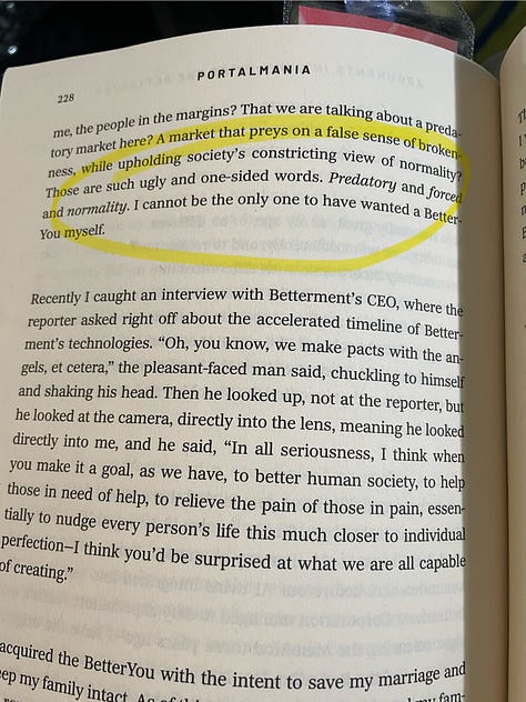 A market that preys on a false sense of broken-ness, while upholding society’s constricting view of normality? Those are such ugly and one-sided words. Predatory and forced and normality. I cannot be the only one to have wanted a Better-You myself.